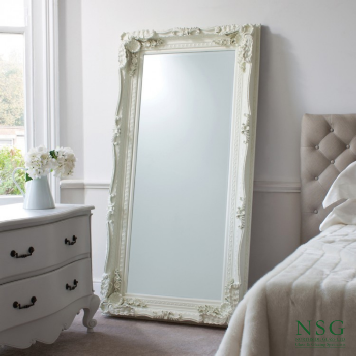 Timeless elegant mirror in a sophisticated matt cream finish.