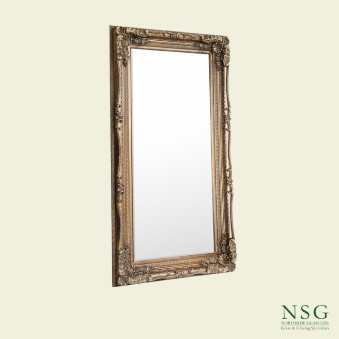 Majestic, statement mirror in a hand applied gold leaf finish.